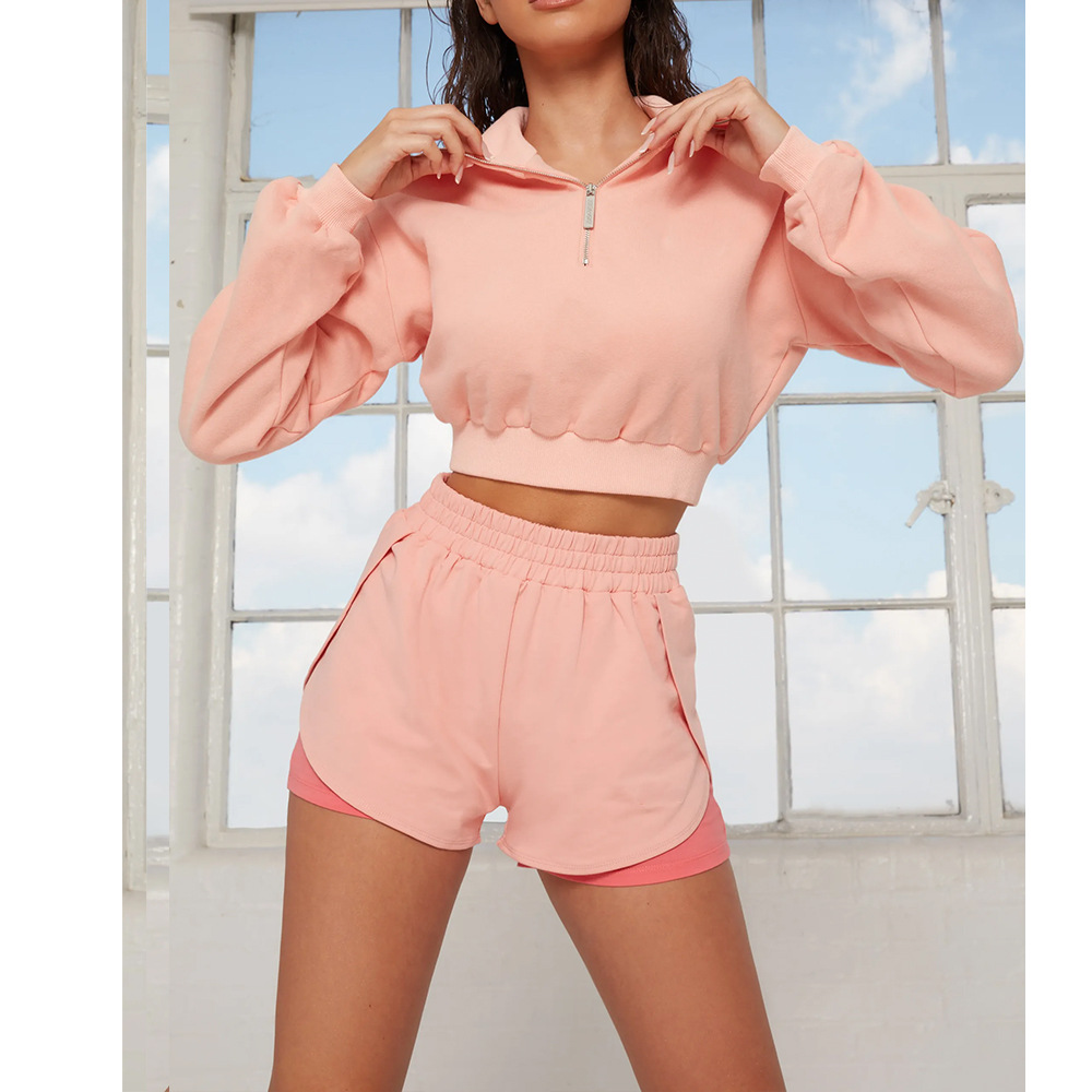 Sweater Solid Color Long-sleeved Casual Sports Suit Fake Two-piece Shorts